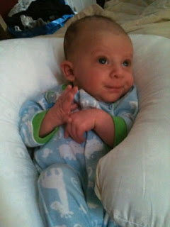 So. independent time actually found you quite happy! We practiced in the boppy, next to me in it, then on the same bed in it, then you actually fell asleep in it! And look at all of the faces and emotions you ran through while in it! I think it'd be fun some day when you're older to make captions for your faces. I wonder what you're gonna think of all of this.