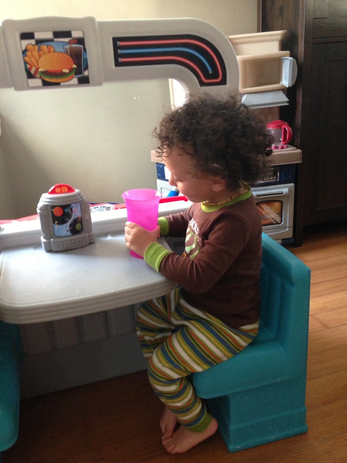 We started the morning off with some apple juice, and then threw blocks all over the room. A good solid start to any day. Though that did seem like a lot of fun, we decided to go to Target and get a sprinkler and a new pool (because I popped a hole in the old one. Bummer.) We came home and spent about three years blowing it up. It took so long that you fell asleep...and we kept blowing up that pool for the entirety of your nap. You had SO MUCH FUN in there! I worry sometimes that Yanira is so fun that you're gonna forget all about me, but luckily, so far, it's just giving me time to make us delicious dinners...that I erased the pictures of by accident. Tonight it was stuffed chard leaves. YUM!