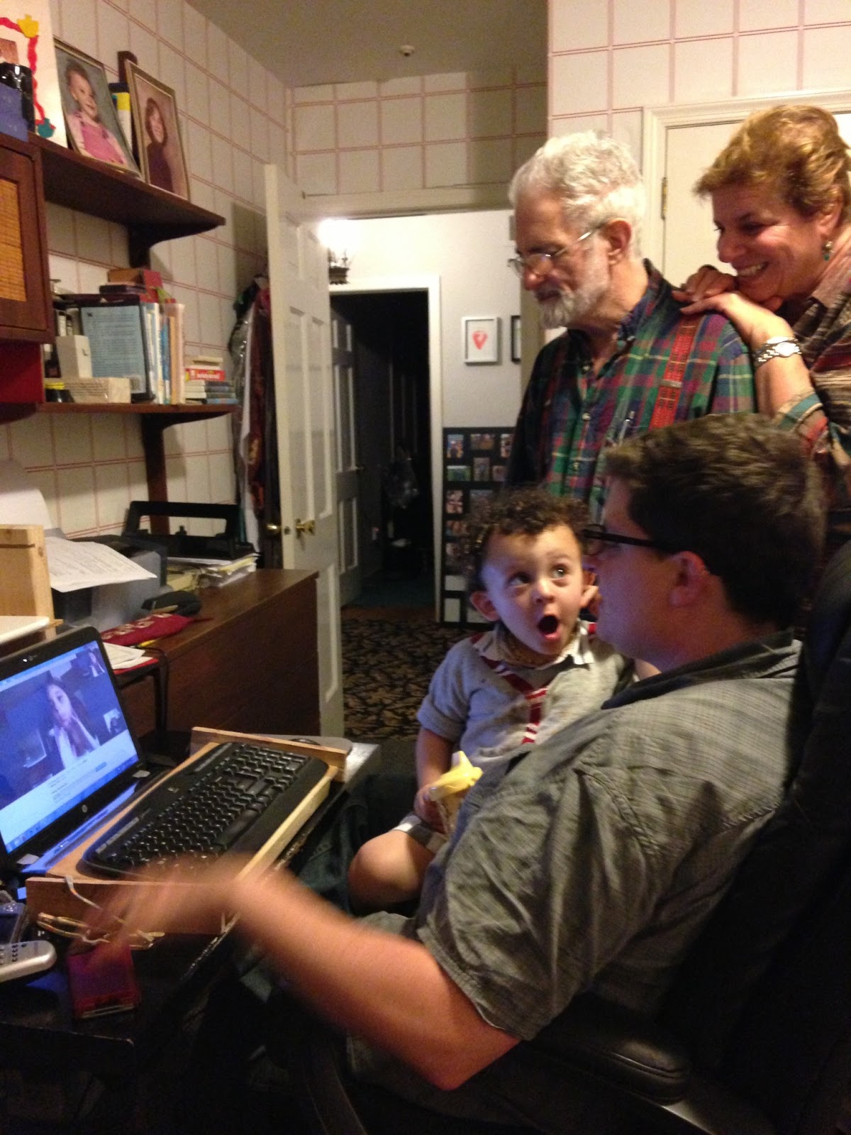 We ended the night at Grandmom and Grandmapa's where Yanira and I SLAVED over a dinner for us all. Then you had water ice with birthday candles and we skyped with the Arizona Schulmans...