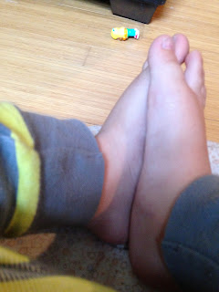 Oh early mornings. Early enough mornings that when I go to the bathroom, you come and "sleep" on the bath mat. Some people might take this as a sign that they should go back to bed....not my little man. Instead, we played and played hard at that. Then I decided to clean. It was time to switch the blankets over to Yanira's, and organize some of your clothes. Past time even. You LOVE the new comforter. I had to work, so you took roughly ten thousand pictures of your feet...then of the top third of your face. (The selfie is an art...it takes years to master fully....)