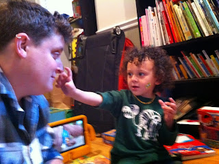 You napped, and then we came back to the house and played for a bit. You showed Steph some of your favorite apps on the iPad, we colored, and put some faces on our faces before dropping Steph off at her place. When we got home and left the car you said "Byebye Stephff." You love your Steph.