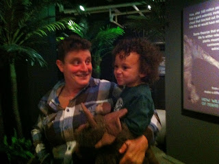 Alphabet trains and Dinosaurs, then we were off to see Steph. We haven't seen her in like 4 days! We all went to breakfast and then went to see the dinosaur exhibit at the Academy of Natural Sciences. "Saursaurs!" George came with us and visited with some of his relatives. A good time was had by all. Until you got cranky. You always want to be held these days...