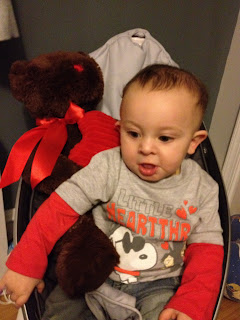 Today we spent the majority of the day with Grandmapa (who AGAIN somehow eludes the blog pictorially). We went on a bunch of errands together and talked about something he's writing. Tali and Charlie wanted to lick your face compulsively no matter where we went to try to escape them. We ended up upstairs listening to music, both of us getting tons of puppy kisses. Oh St. Valentine...I heard the historical origins of this holiday today for the first time...I'll leave it off of the blog in case you like the holiday but don't like bought gifts for it :) I love you kiddo, happy first V-day.
