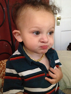 We were having a kind of boring day. We had learned lots of hand motions for songs, but aside from that we had nothing interesting going on. You fell asleep and I posted on Facebook about how bored I was...so I looked on craigslist because nothing interesting was happening anyplace else and there were free toys posted! I transferred you to the car and we drove out to the middle of nowhere. The toys were already gone when we got there. You were still asleep so I checked and found another deal and we went out to the middle of nowhere in the other direction. We ended up with so much cool stuff! You loved your new bear friend and you also loved a book that played music that you played with for much of the way home. You were pretty cranky when we got home, but when I showed you your new doll stroller you were so happy...I didn't adequately capture the face you gave me...and the house was wrecked...but you were so happy a picture had to be posted.